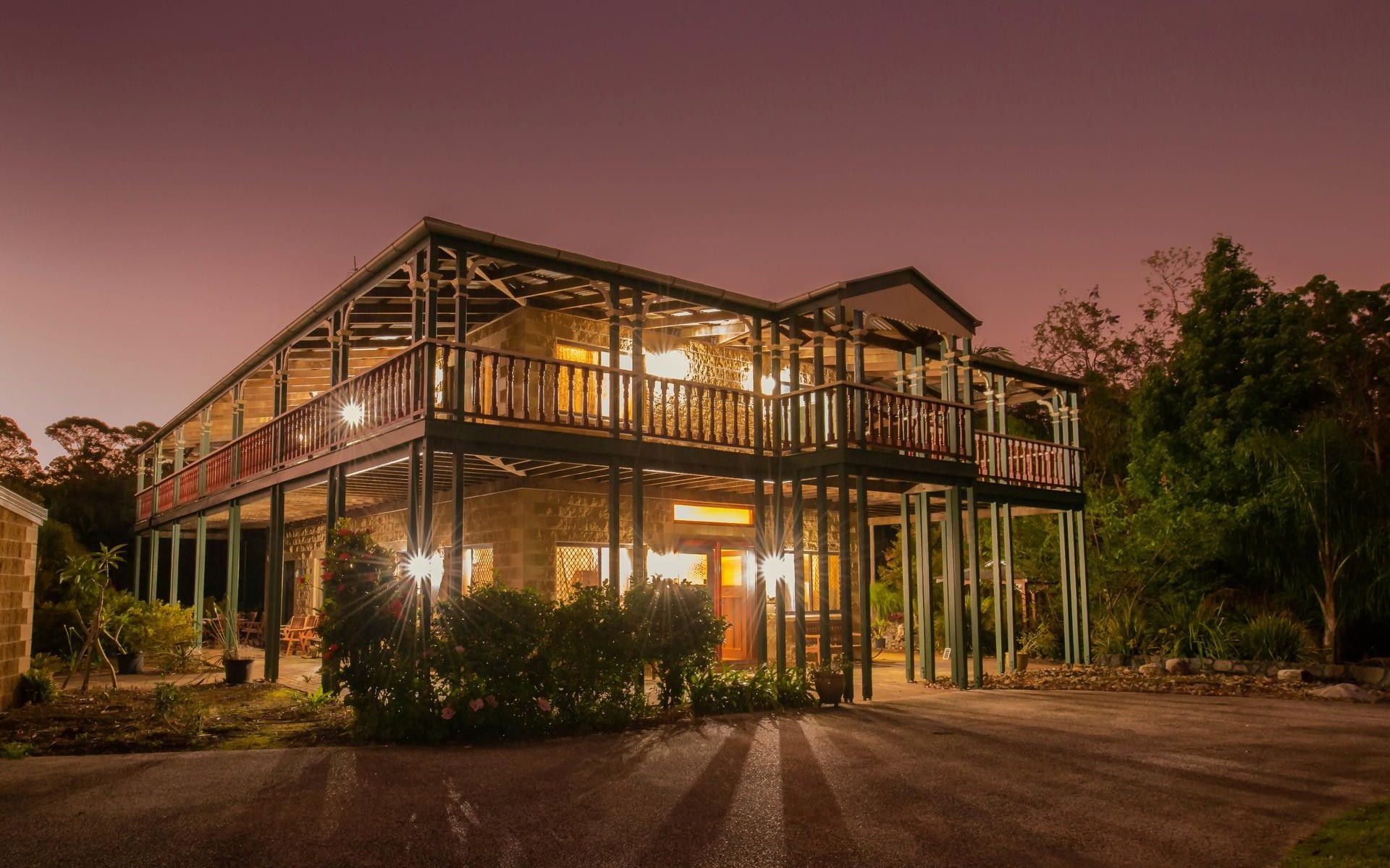 The residence itself covers approximately 547m2 and comprises formal entry, five bedrooms, three bathrooms, well equipped kitchen, multiple living areas, two offices (multipurpose rooms), extensive wraparound covered veranda on both levels plus covered timber decking, and separate laundry.
