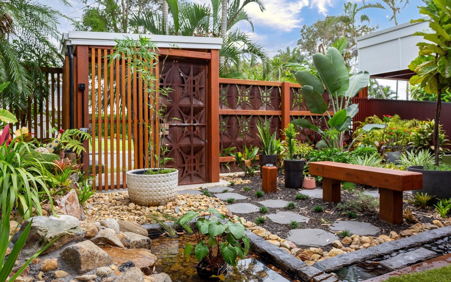 Architectural detail is evident throughout, with custom corten steel elements, including a striking screen fence with cypress timber posts and corten steel gabions that add both visual impact and durability. Every deck across the property has been replaced, reinforcing the seamless connection between indoor and outdoor spaces.