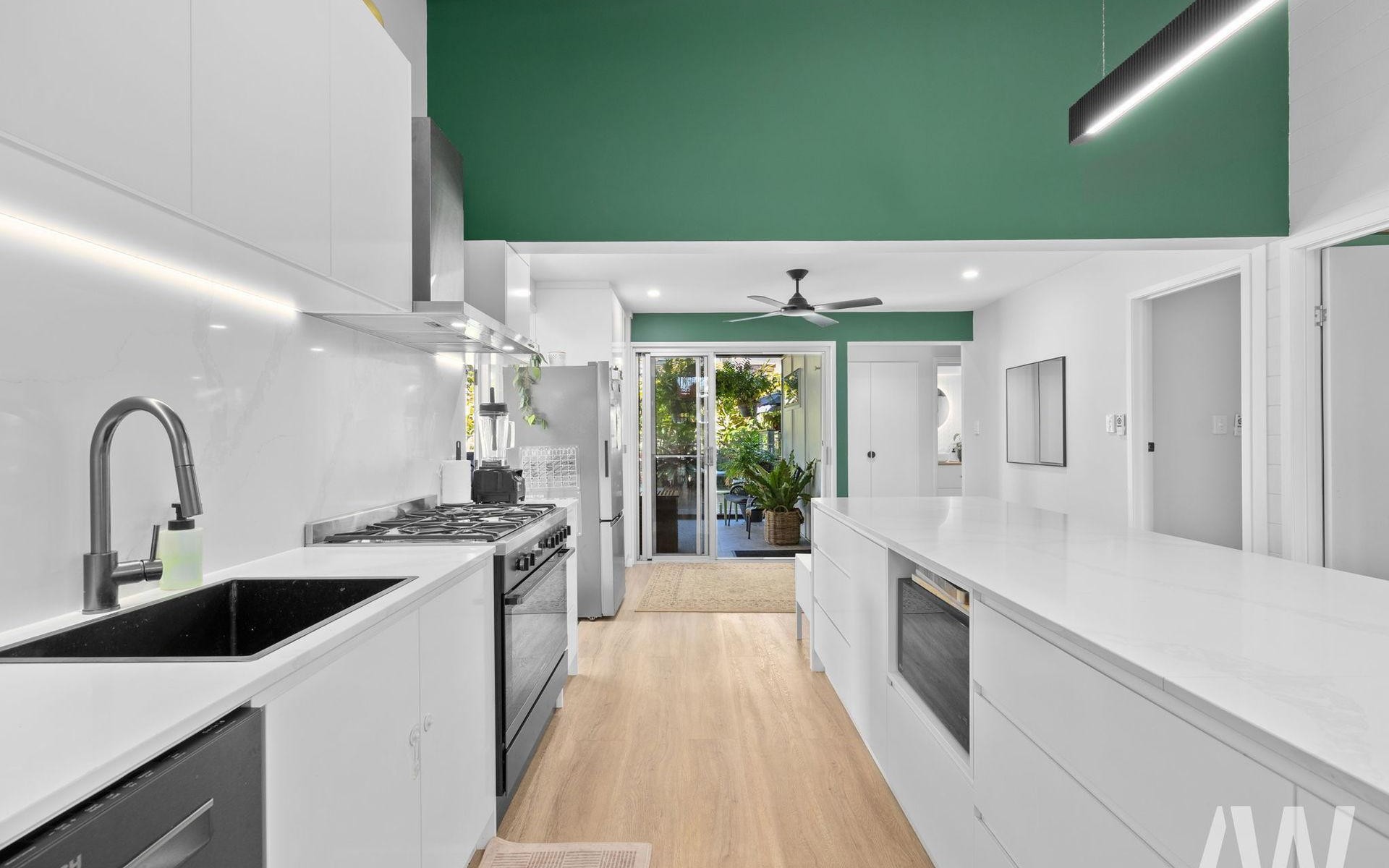 The main residence is light-filled and welcoming, enhanced by hybrid waterproof clip-lock flooring, a crisp coastal colour palette and seamless indooroutdoor flow. At the heart of the home, the designer kitchen features premium stone benchtops, quality appliances, built-in cabinetry and generous storage, connecting effortlessly to the main living and dining zones beneath soaring raked ceilings - ideal for both relaxed everyday living and entertaining.