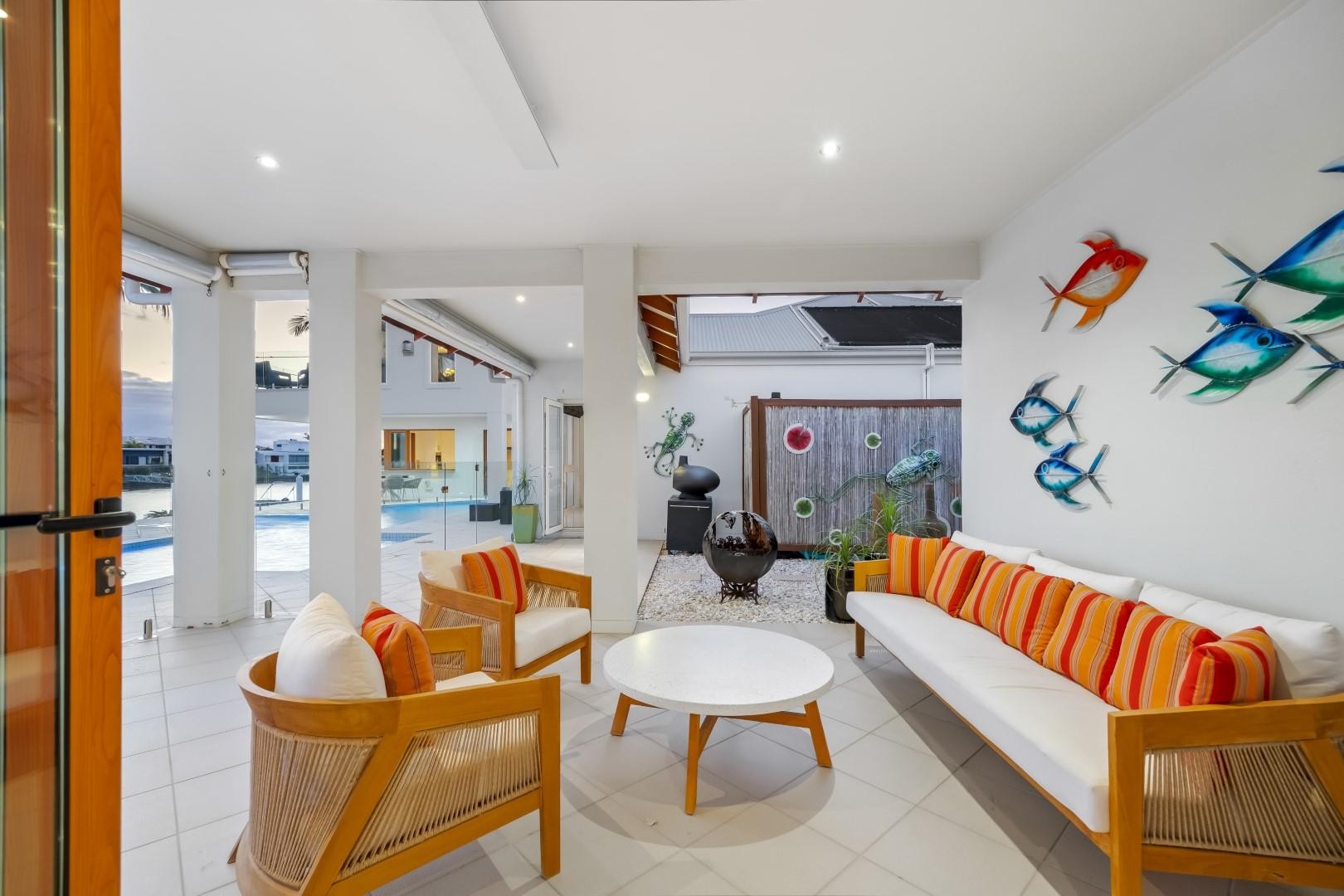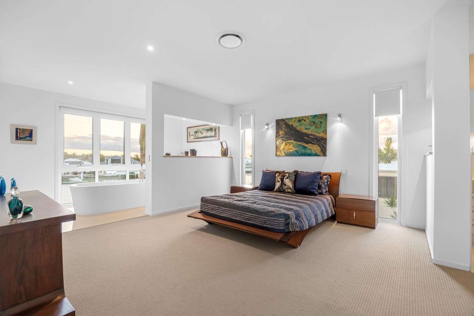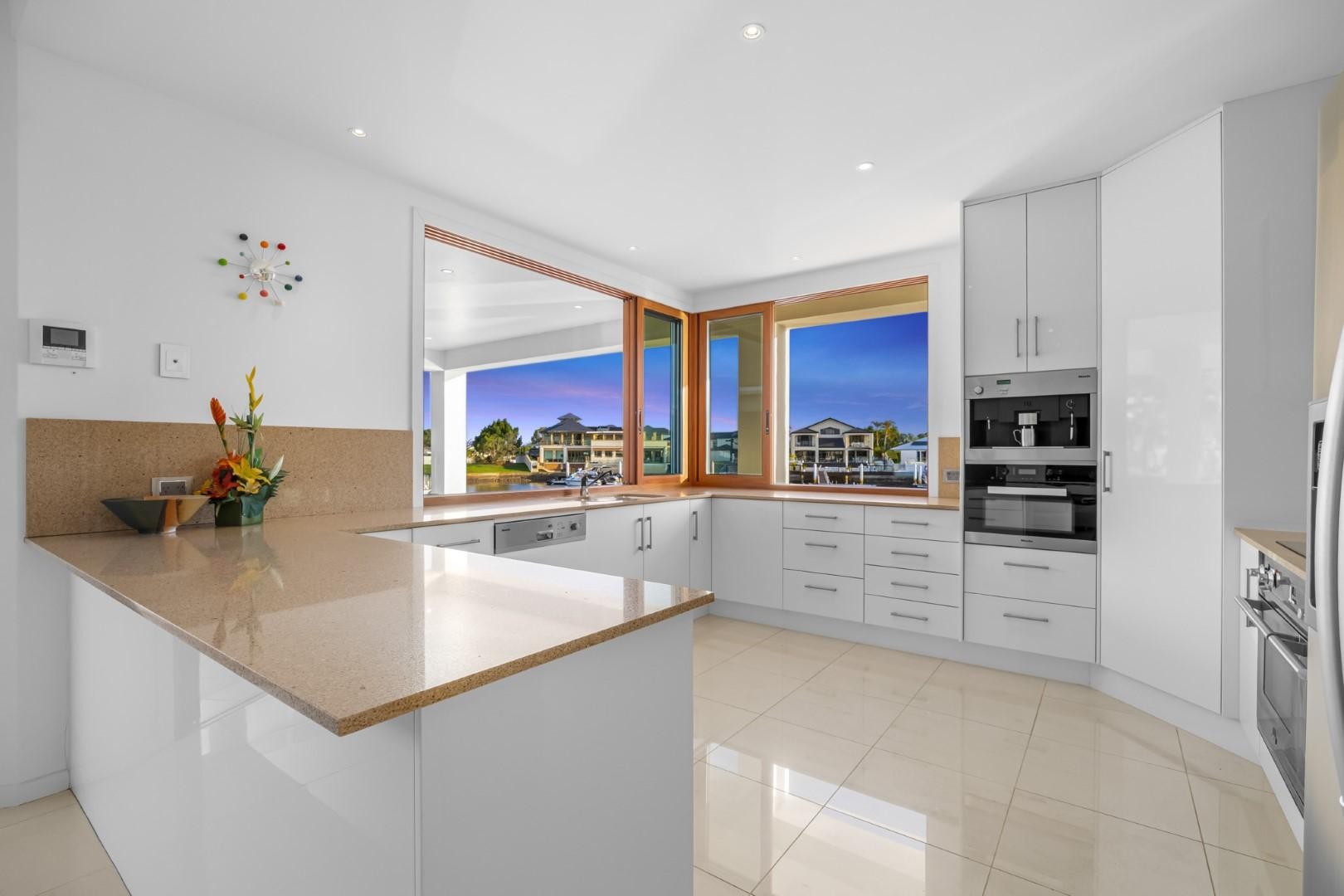 Set on an impressive 1,804 sqm block with approximately 41 metres of deep water frontage along the tidal waterways, 9 Sea Glint Place is effectively two homes connected by an undercover walkway and sitting area, offering flexibility for large families, multigenerational living, or guests seeking their own private retreat.