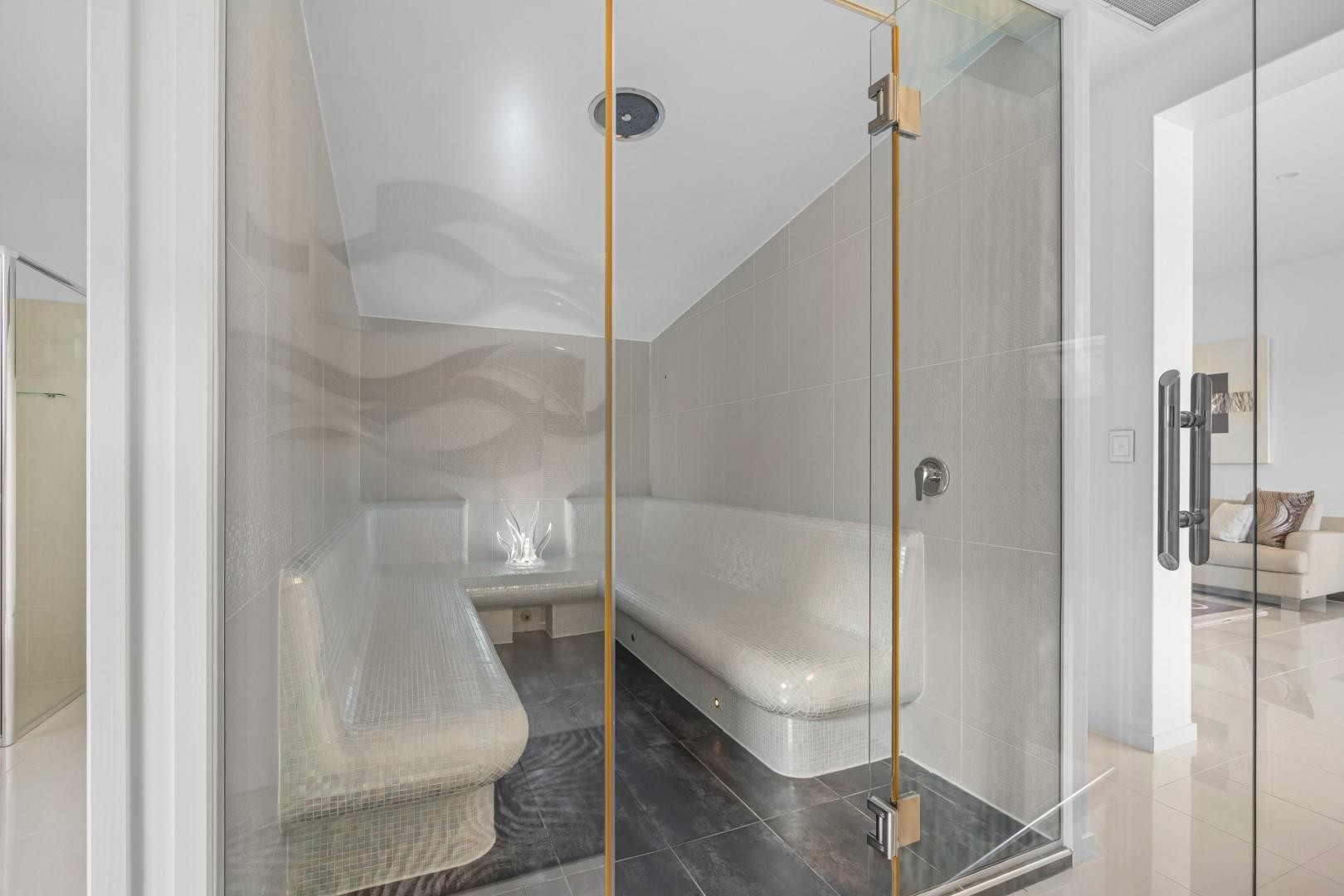 The second wing of the property is equally impressive, designed with both luxury and leisure in mind. It features a dedicated pool table room with an adjacent drinks preparation area, a guest bedroom with its own ensuite and private landscaped garden and courtyard access, as well as a gym, a steam room, and an additional bathroom servicing the outdoor entertainment spaces. The luxurious lounge of the second wing is the centrepiece of the home's entertainment areas. It seamlessly connects with the pool patio through large bi fold doors, creating an expansive indoor-outdoor space ideal for larger social gatherings. A large picture window looks out onto the landscaped north facing garden, while the bi fold doors offer extensive views of the pool and canal.