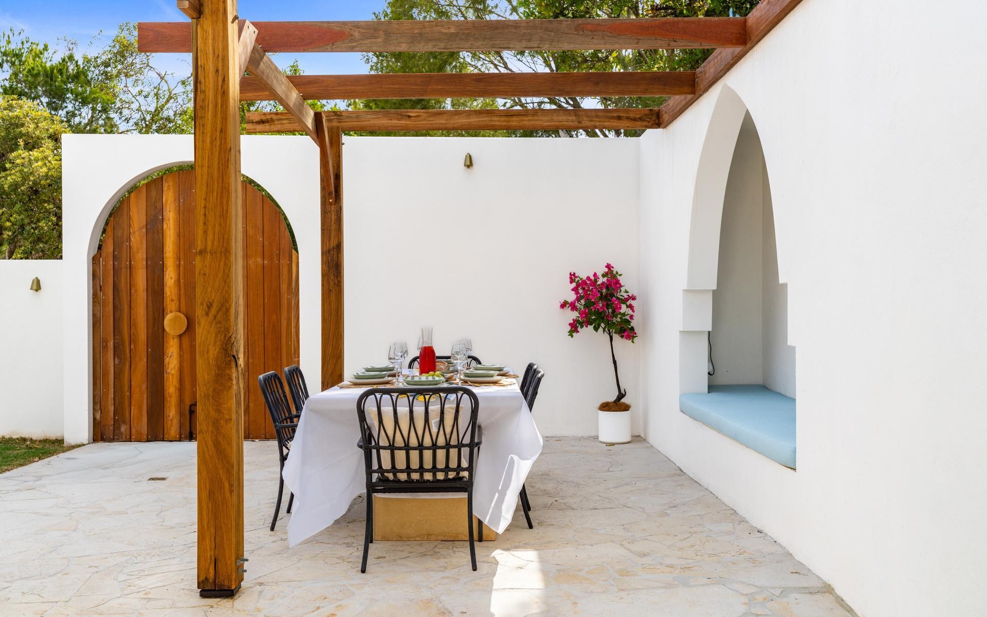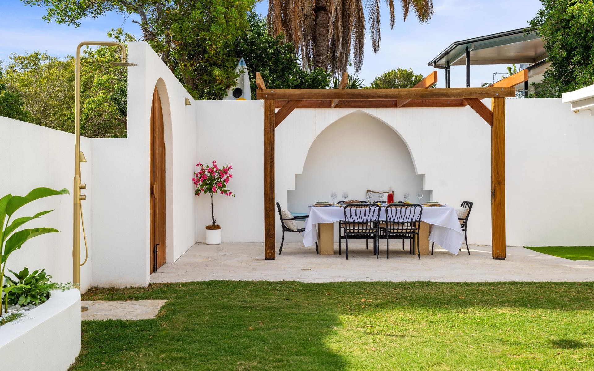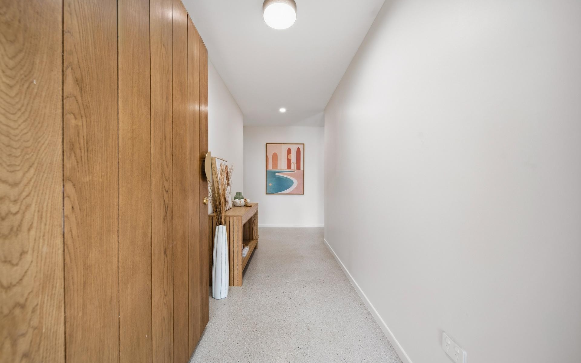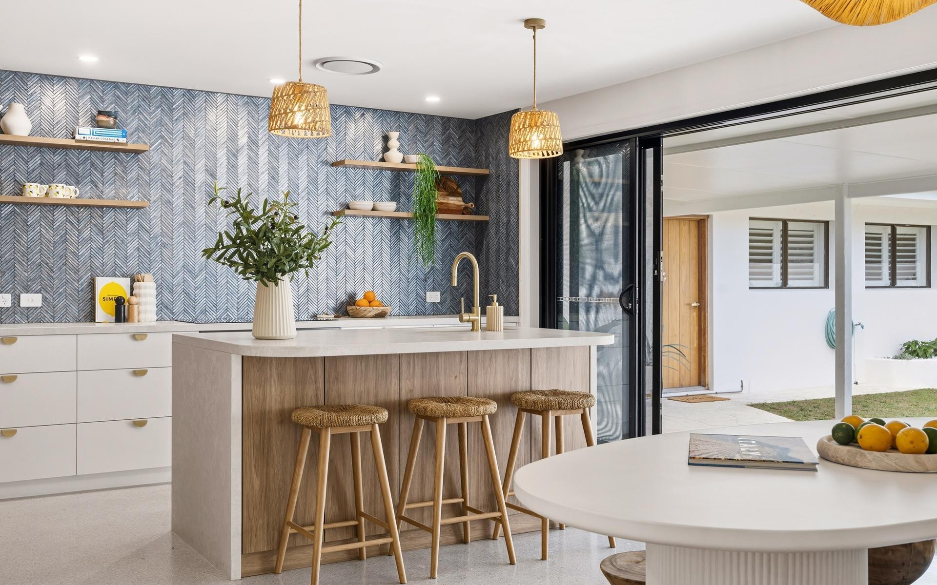 An impressive suite of features including bespoke fixtures and fittings really elevates the wow factor of Casa Palmera; from the circular terrazzo stone bath, brushed brass tapware, abundance of gentle arches and curves, limestone crazy paving outdoors, through to the custom-designed gate and arched entry into the property which truly sets the tone for what lies within.