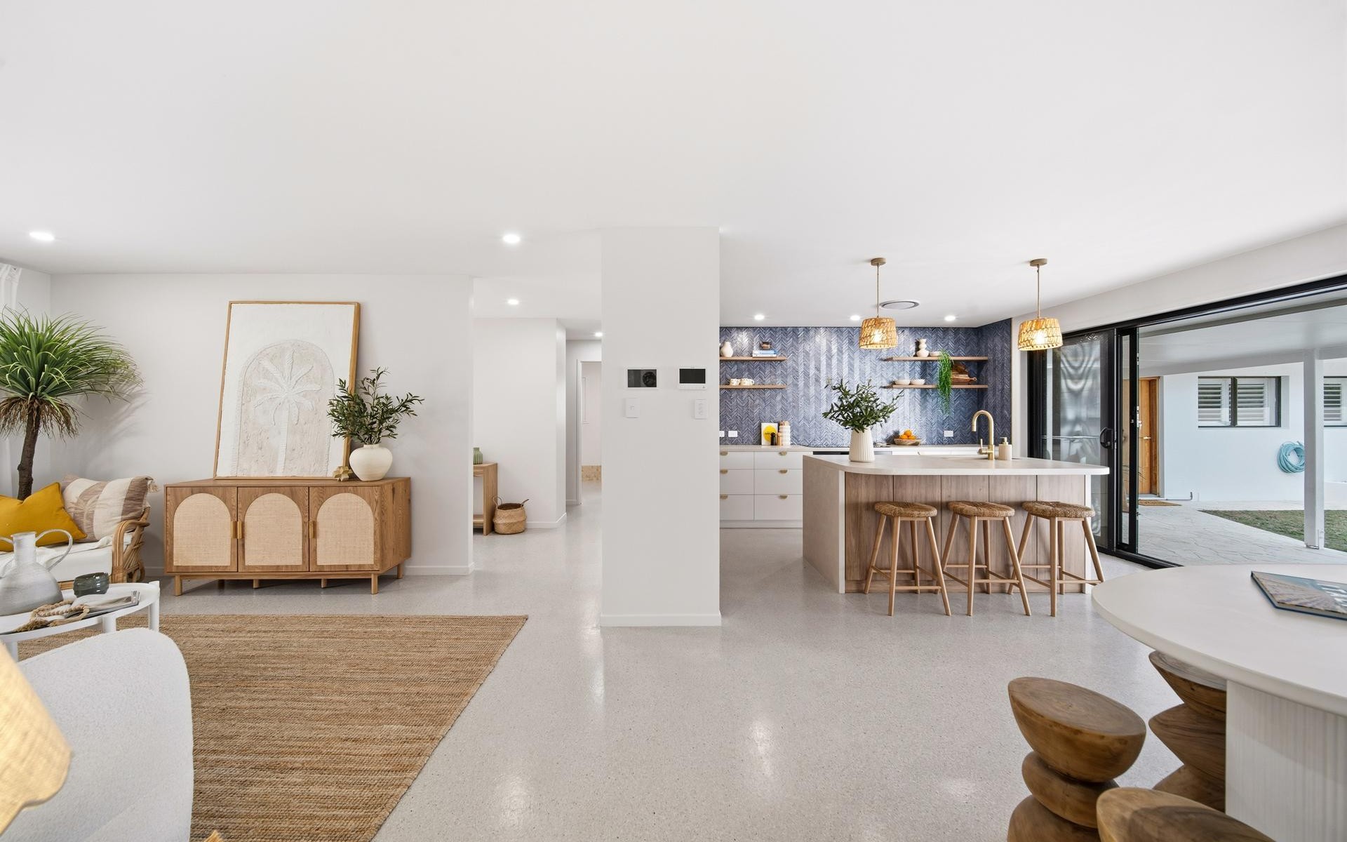 Other features of note include polished concrete flooring, ducted zoned (smart controlled) air-conditioning, Crimsafe screens, 40mm smart stone benches in kitchen, quality appliances, striking herringbone splashback, plantation shutters, floor to ceiling sheer curtains, built-in bench seats, digital intercom with camera, electronic gate, outdoor shower, and pergola.