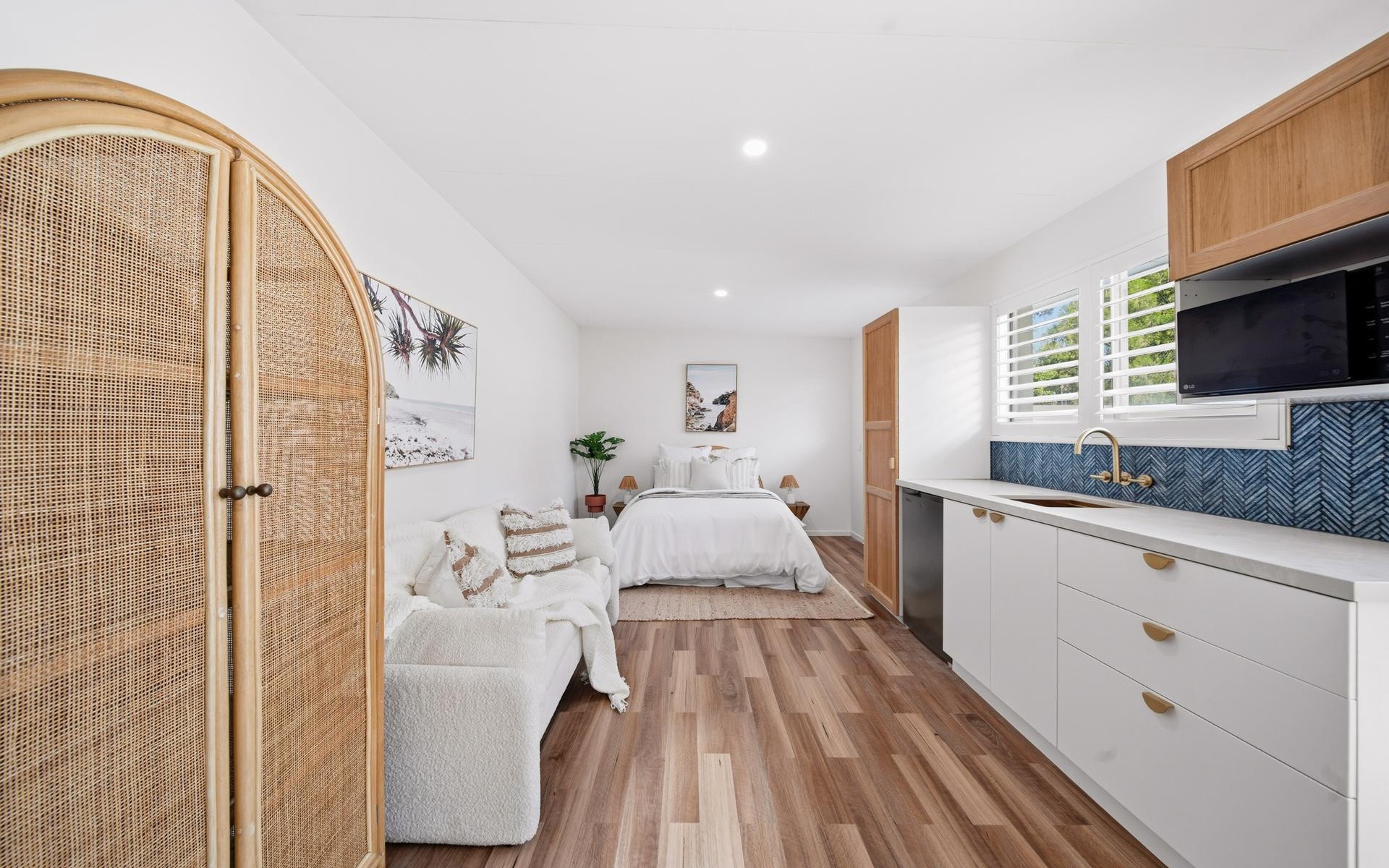 Across a single level the main residence comprises three bedrooms, an additional study or bedroom with external entry, two sumptuous designer bathrooms, light-filled open plan living, premium kitchen, east facing covered terrace, and full-sized laundry. There is a separate fully self-contained studio/granny flat perfect for intergenerational living or income stream via short/long-term rental.