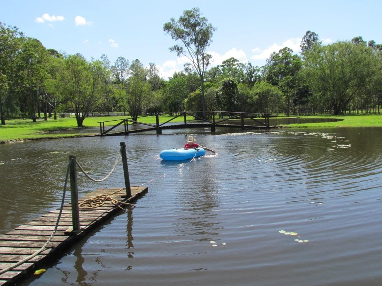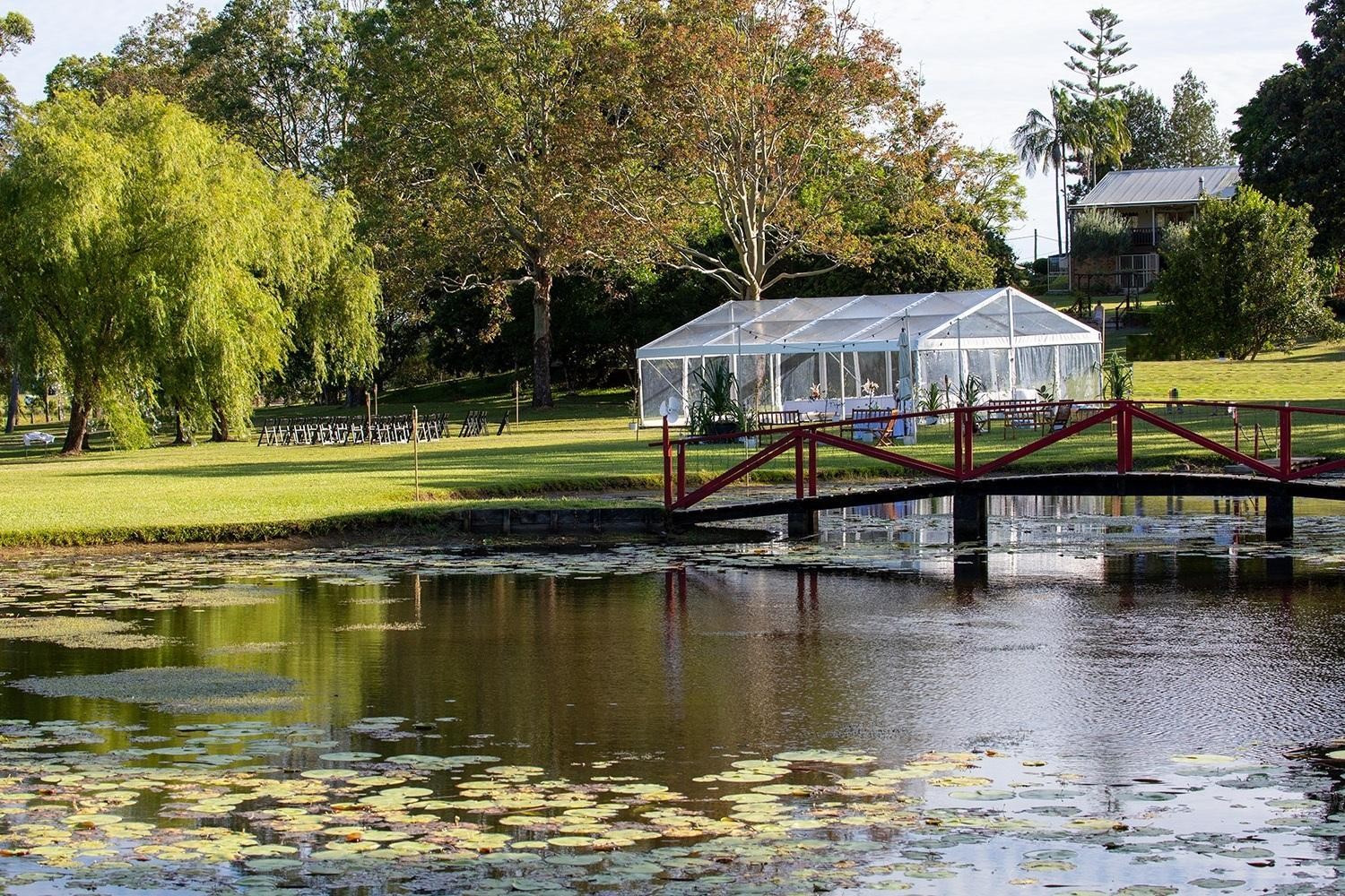 The gardens immediately surrounding the home are beautifully landscaped and well established with a mixture of colourful flowering shrubs, shady trees and grassy lawn. The remainder of the 14.2 acres is a blend of expansive lush grassy space (suitable for livestock including horses), a picturesque fresh water dam with its own bridge and jetty a striking centrepiece, a stand of cabinet timber trees, plus fruit trees and manicured hedging.