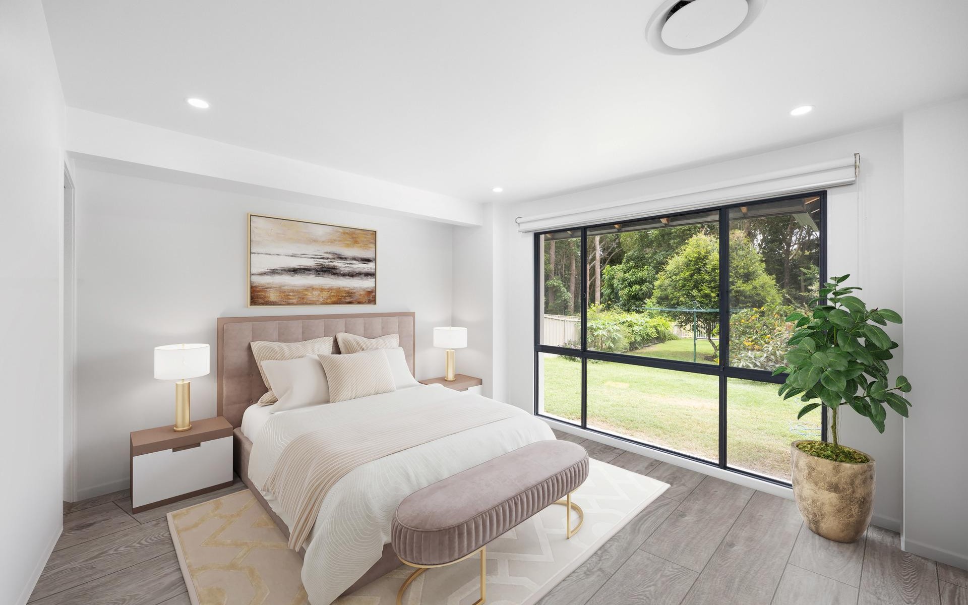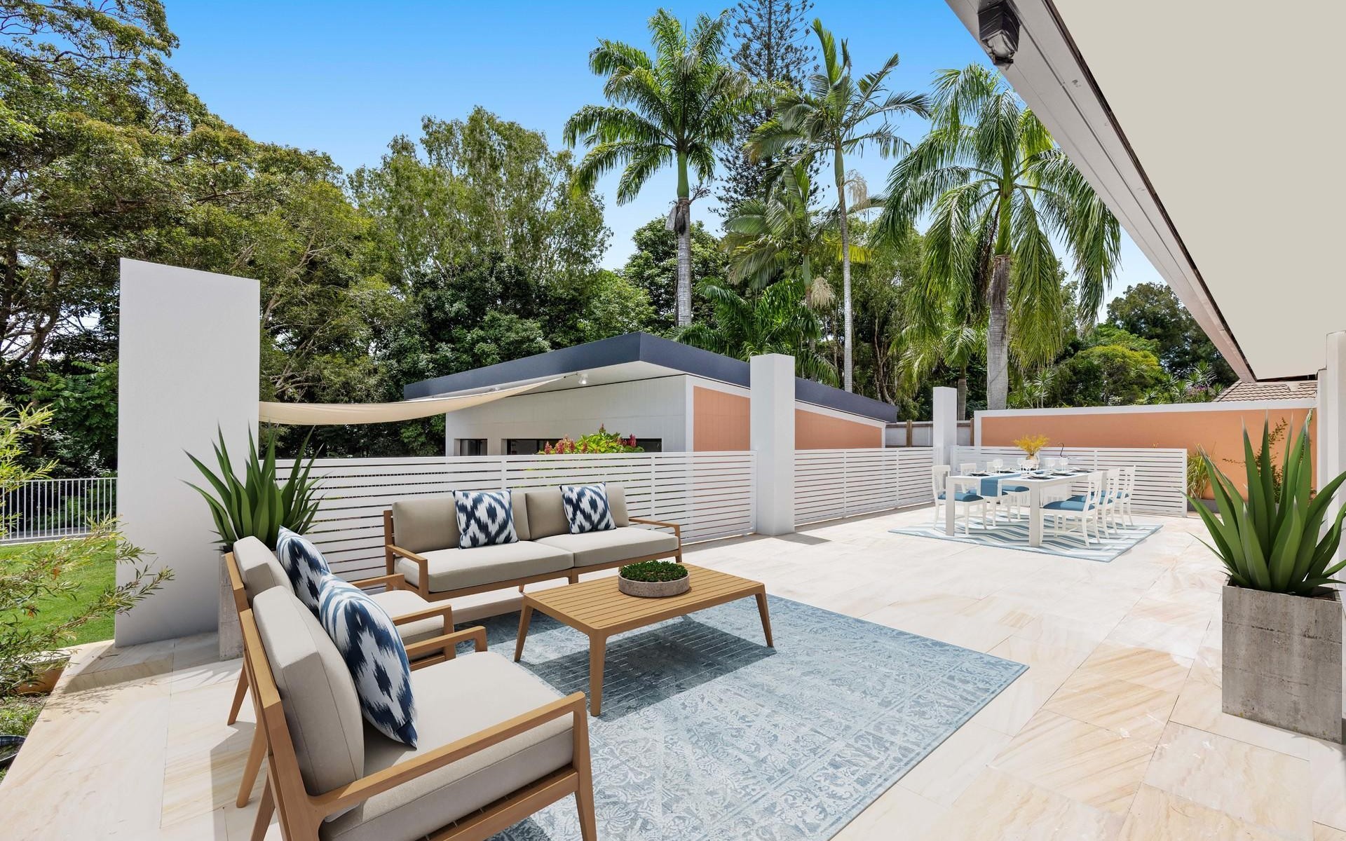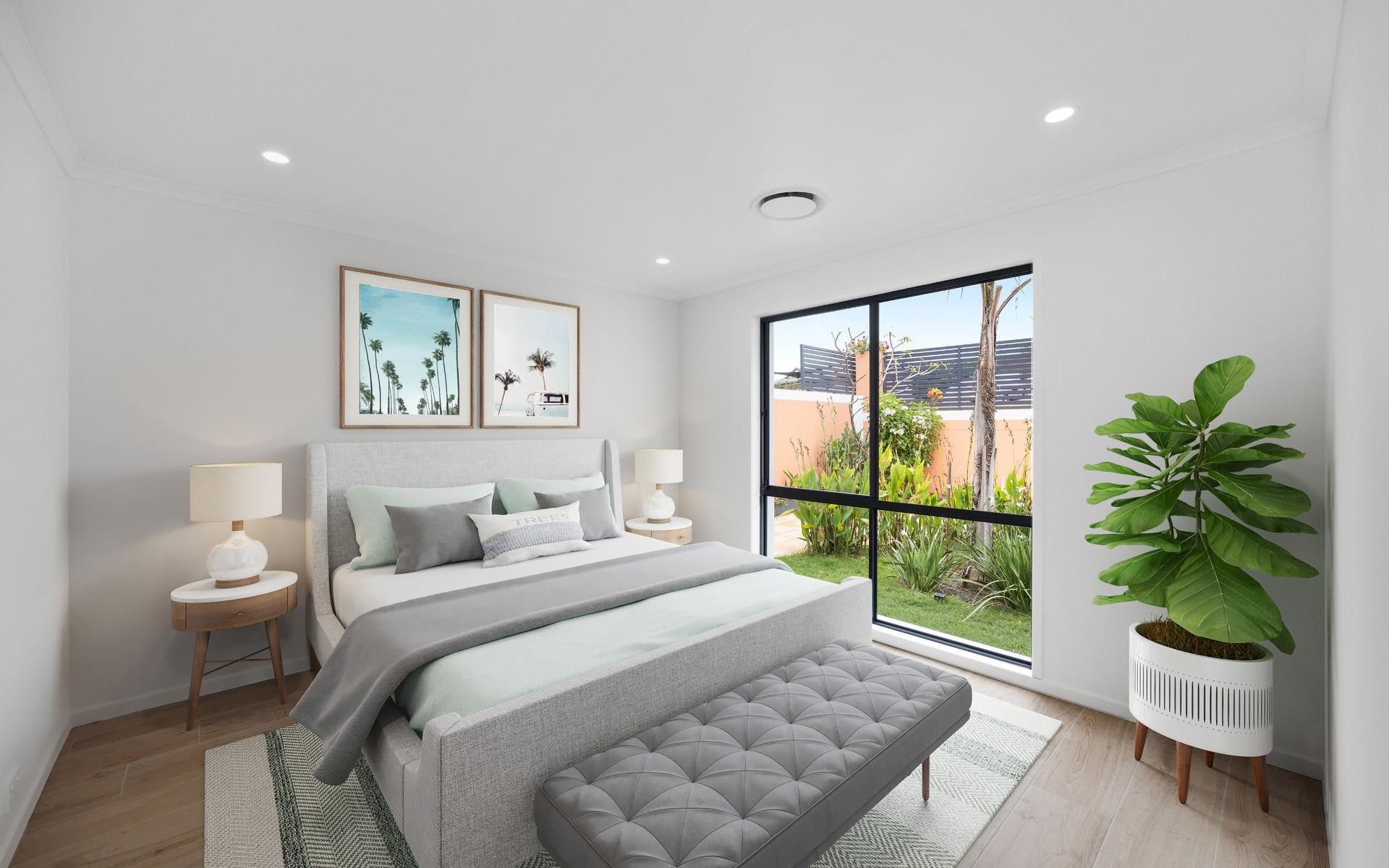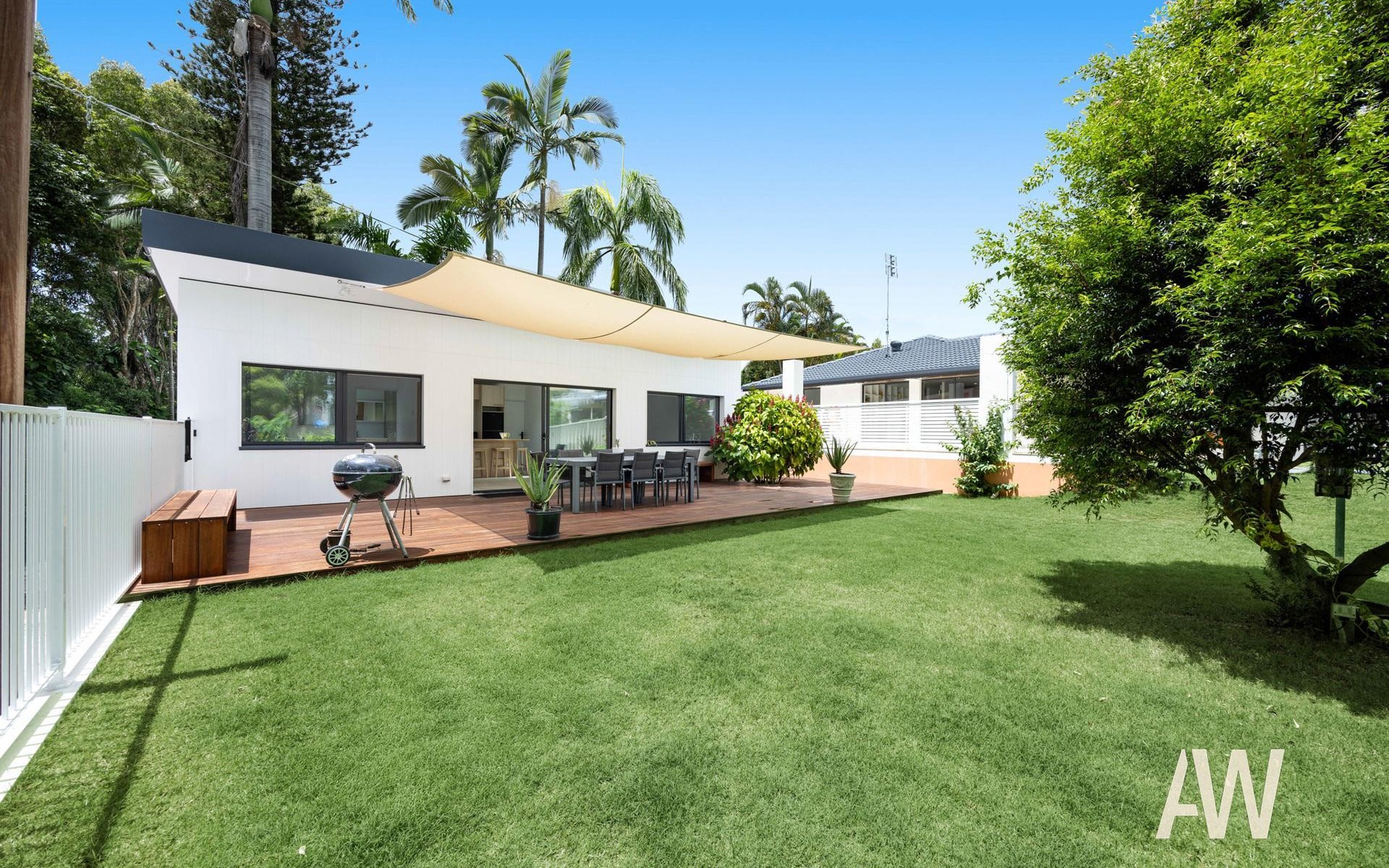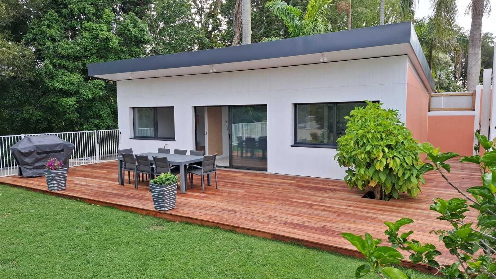 The property also includes a newly built guest house that offers both privacy and style. With its own separate side access, the guest house features skylight windows in both the main living room and bathrooms, bringing in natural light and an open, airy feel. Offering two bedrooms and two bathrooms (both ensuites), the guest house is an ideal space for extended family, guests, or even a rental opportunity. The bedrooms come equipped with custom-made bamboo beds and built-in storage sheds and desks, creating an effortlessly stylish and functional space. The high-end kitchen features a bamboo benchtop and premium finishes, while air conditioning and ceiling fans provide comfort year-round. The guest house also boasts a door that opens out onto an outdoor decking area, offering a peaceful retreat.