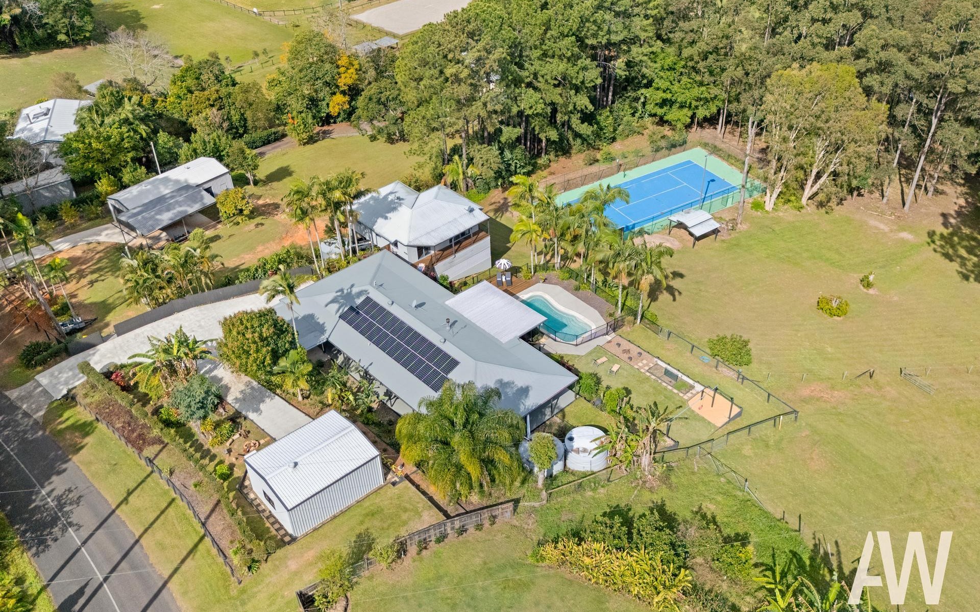Set amongst macadamias, bananas, raspberries, and native flora, this estate combines luxury living, income-generating versatility, and resort-style recreation across three dwellings, 2 large sheds, and beautifully maintained grounds.