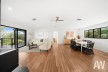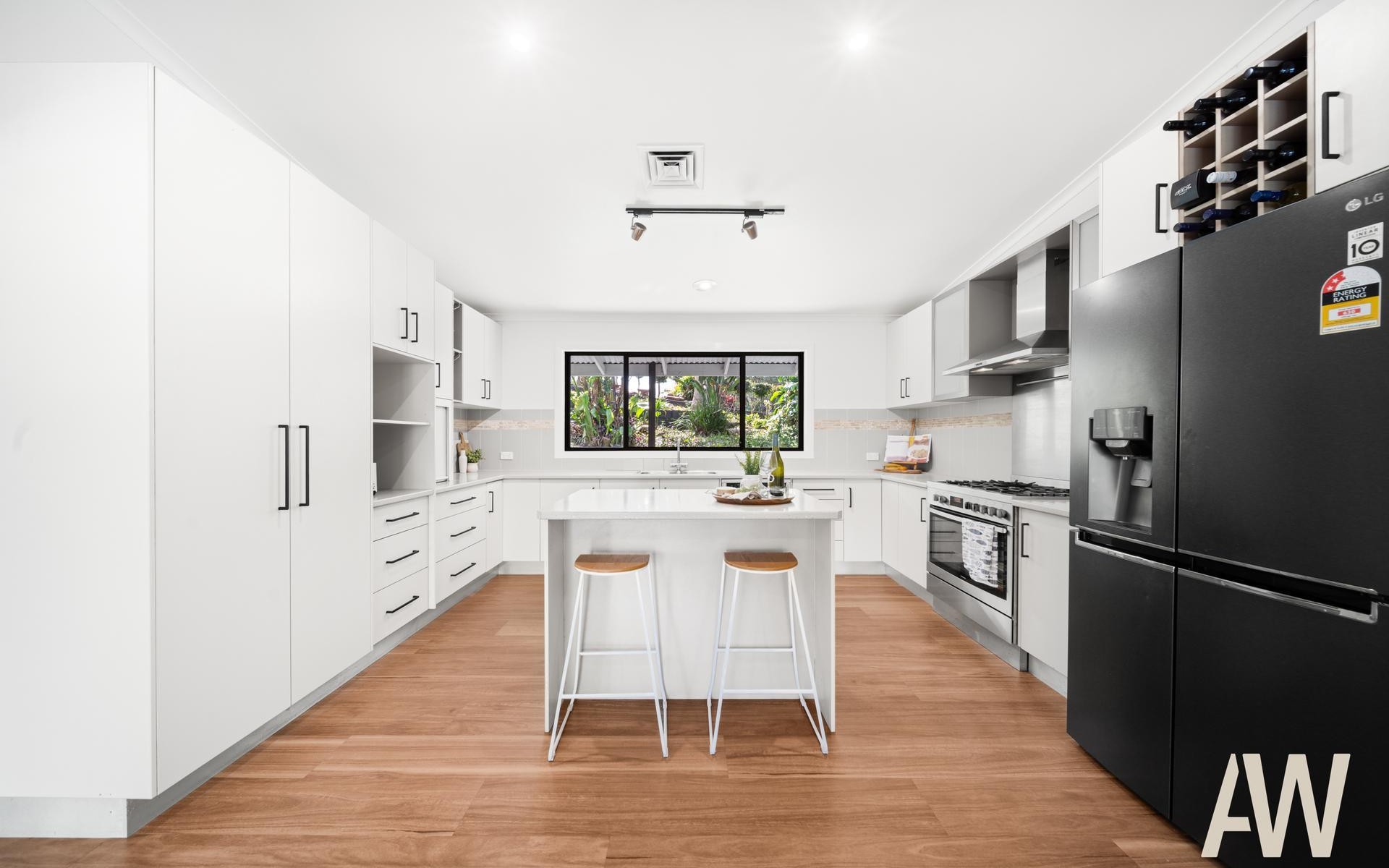 The beautifully designed four-bedroom, two-bathroom home exudes comfort and sophistication. Premium vinyl plank flooring, ducted air-conditioning, and impressive raked ceilings enhance the oversized living room and kitchen/dining space.