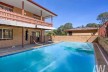 Outdoor living is enhanced by a covered deck area, perfect for alfresco dining or relaxation. The property also boasts an in-ground swimming pool, offering a refreshing escape during warmer months. Additional features include air conditioning for year-round comfort and a double garage providing secure parking.